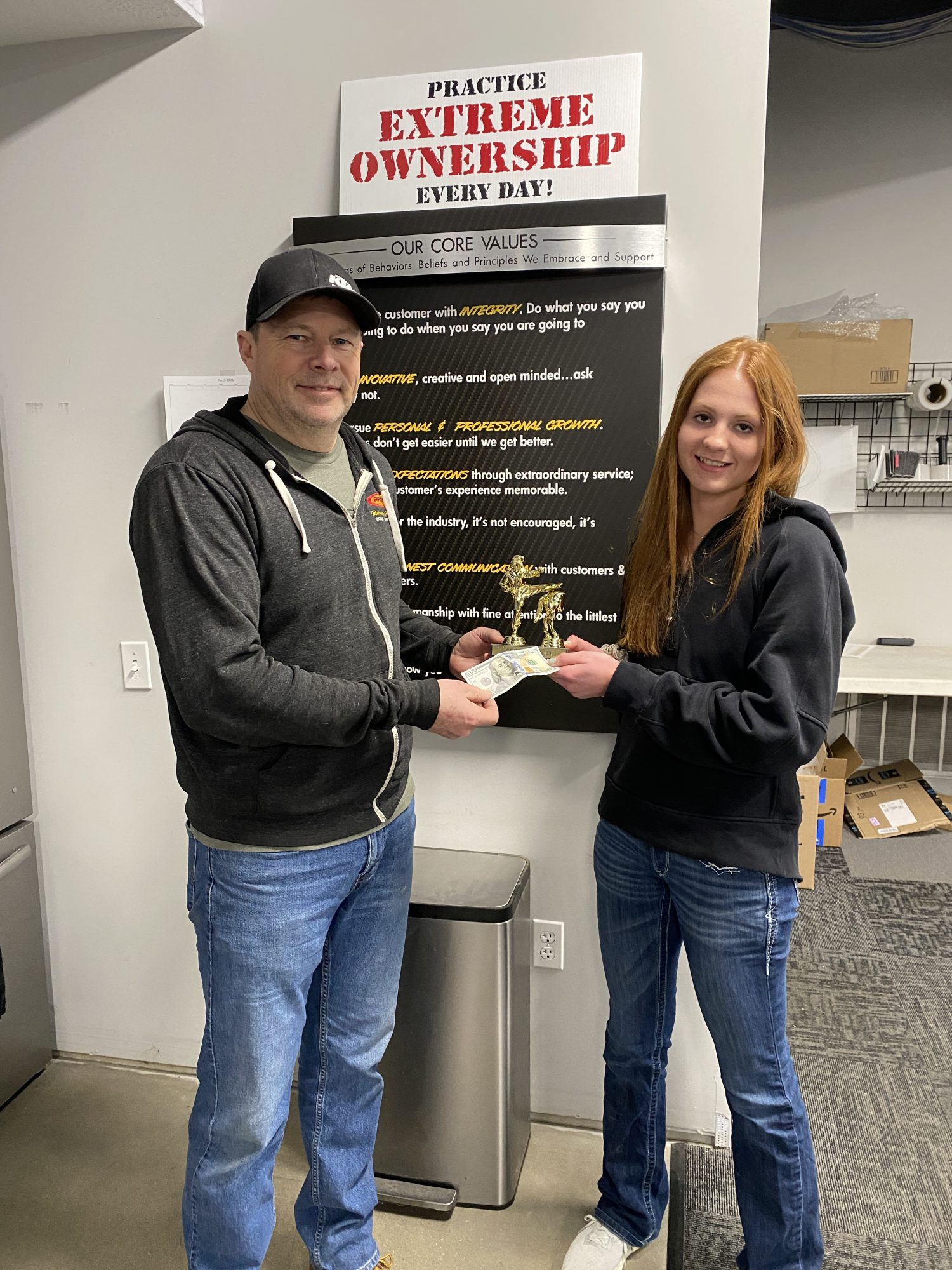 Back in December, Sarah was recognized in a big way. She was voted as the employee who best represented all of our core values throughout 2025, which is an incredible honor. To be seen by your coworkers as someone who consistently brings so much to the table says a lot. Sarah’s recognition is a reminder that showing up every day with the right attitude, commitment, and care does not go unnoticed.